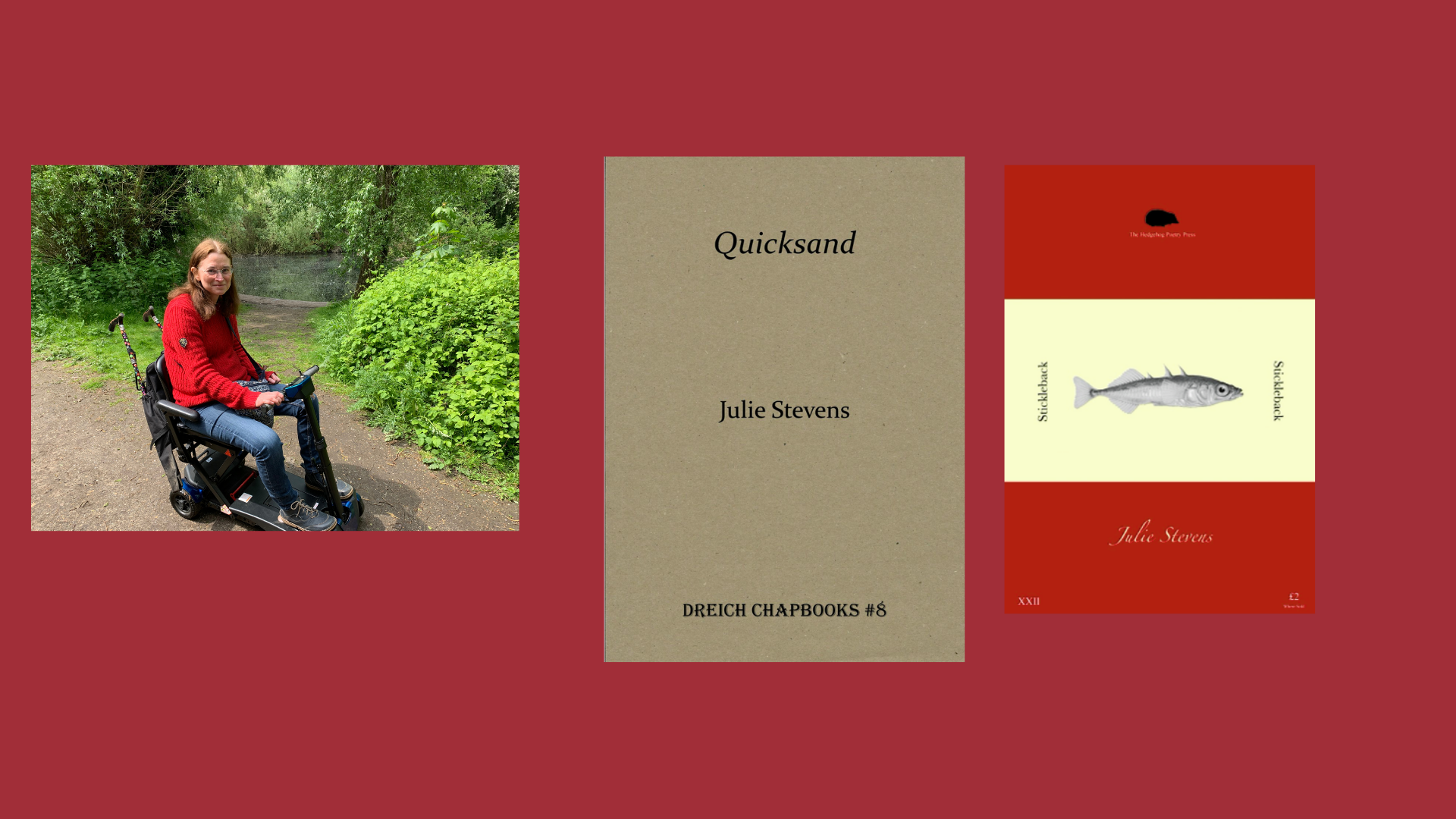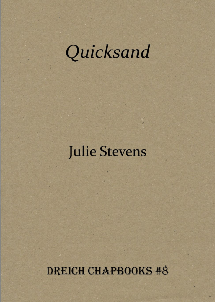 Julie Stevens writes poems sometimes reflecting the impact Multiple Sclerosis (MS) has on her life. Her poems have recently been published on Ink Sweat & Tears, in Sarasvati (Indigo Dreams) and on the Honest Ulsterman. Her winning Stickleback pamphlet Balancing Act was recently published by Hedgehog Poetry Press (June 2021) and her debut chapbook Quicksand by Dreich (Sept 2020).