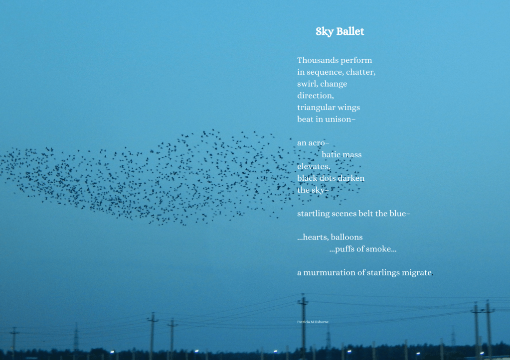As it is National Poetry Day I thought I’d share one of my poems. Sky Ballet was first published in Sarasvati Magazine (Indigo Dreams Publishing 2017) and later in my poetry pamphlet Taxus Baccata (The Hedgehog Poetry Press – 2020)