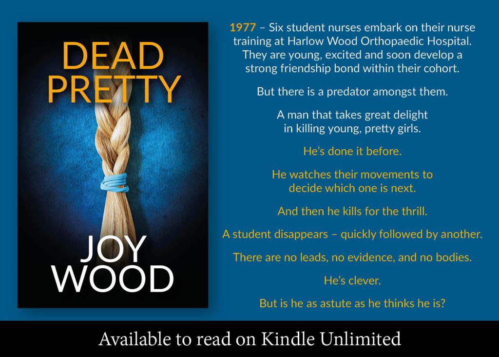 I’m absolutely delighted to share my new release, Dead Pretty. This book is close to my heart as I actually started my nurse training at the wonderful Harlow Wood Orthopaedic Hospital in the 1970s – sadly it’s now a housing estate. The 70s are a nostalgic memory to many of us (pay phones, The Little Chef on the motorway, and sending our photograph films off to Truprint) – I’m sure the memories are flooding back for you all.