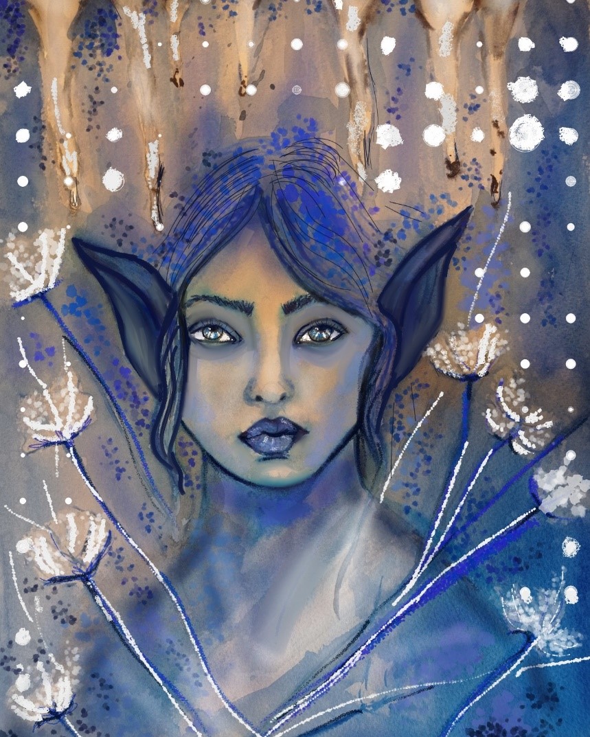 As for the subjects of my artworks, each one of them has a story, made up from my imagination, or from history or other fields of human knowledge, even if it is just hinted at, and brushwork after brushwork, their stories unfold on the paper/canvas, mingling with feelings and emotions from my personal experiences. I tend to paint mostly female subjects, and I mainly focus on faces although I like to vary and draw or paint subjects that belong to the natural or fantasy world. I have never set limits on what or how to draw. I definitely have preferences, but I love finding new ways to express myself through my art; I try to create works pertaining to what I am passionate about. I’m fond of fairy tales too and have always loved mythology and folklore, so I really like drawing on these branches and using their fruits.