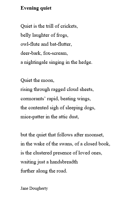 It seems that I’ve been beaten to writing a review of Jane’s latest pamphlet. I had to put off reading it while I was at my daughter’s – and then I got ill. But as soon as I have absorbed the beauty of the writing, I will be doing it justice on Good Reads and Amazon.